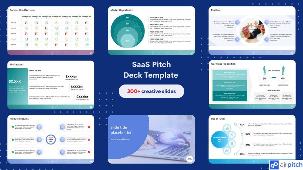 Template design is based on a stringent evaluation of Founders' requirement, business plan outcome and investor-grade qualifying criteria. Unique design formats serving varied needs and brand identity of our patrons, gives our design experts an edge over others to deliver custom-made, highly impactful pitch templates. AirPitch endeavors to do just that for your brands. Just download the template for the growth your business deserves and stand out.