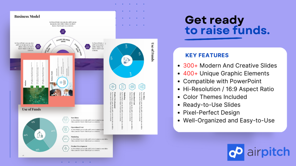 Delighting startup tycoons is at the core of AirPitch. Founded in 2022, with a specific aim to develop path defining startup PPT and amazing pitch deck designs for making their fund raising a memorable event. High quality templates are available in variety of presentation formats to suit all your business needs. Our esteemed entrepreneurs have made an impression on Investors with our custom-built pitch deck templates. The brands desiring to have an edge in influencing their potential investors, need AirPitch to succeed. Simply pay for what you need and rise to the fund-raising occasion, without worrying about any subscription fee.